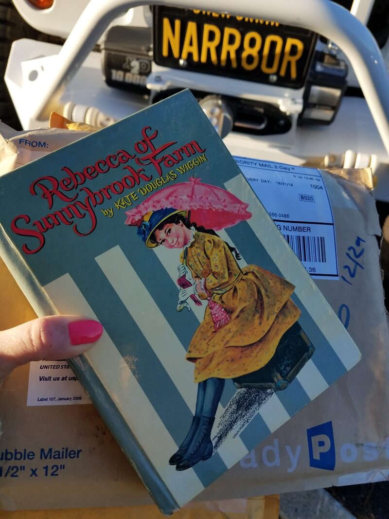 Fast-forward to December 31, when I drove to the post office and picked up my mail. A package was waiting for me, and lo ‘n behold, it was an old hard-back copy of “Rebecca of Sunnybrook Farm” sent by my friend, Don! He’d vacationed in New England over the fall and came across it in an antique store and remembering my lament at not being able to find one, he picked it up and sent it to me. How cool is that!?